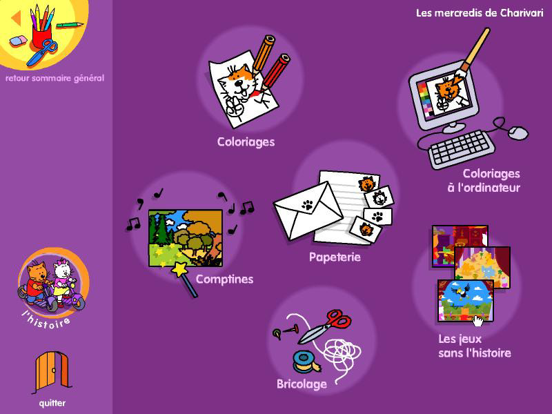 Dans le village de Chat-Malô, tous les habitants sont des chats. L'enfant découvre de nombreuses activités : jeux, musiques et comptines originales mais aussi coloriages, pliages et papeterie à imprimer…