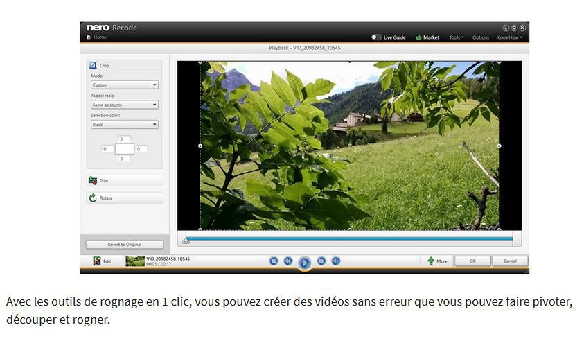 Vous avez filmé avec votre smartphone dans le mauvais sens et maintenant votre prise de vue se joue tête en bas? Nero Recode met sur pied des vidéos sans erreurs avec ses outils d’ajustement simples en un clic pour tourner, couper, raccourcir autant qu’il vous plaira. Au fait: avec l'application WiFi+Transfert gratuite, vous pouvez également transférer facilement vos archives multimédias converties et la pochette de l'album sur vos appareils portables.