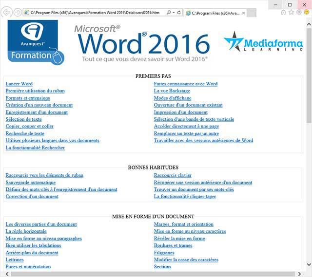 Formation à Word® 2016 vous permettra de maîtriser l’ensemble des fonctionnalités du nouveau Word® 2016 à l'aide d'une formation vidéo interactive aussi bien conçue pour les débutants que les utilisateurs confirmés.