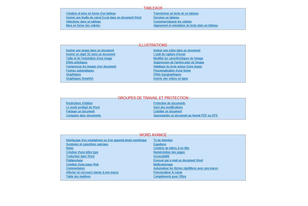 A travers une centaine de vidéos, vous couvrirez toutes les possibilités de Word Office afin de créer, mettre en page et réviser tous vos documents texte.