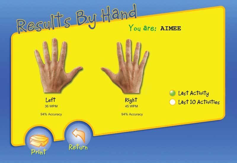 Instant Feedback is provided on typing results so you can see how you did on a lesson, challenge, test, or game right away. Detailed results show the keys you know well and the keys that need more practice.