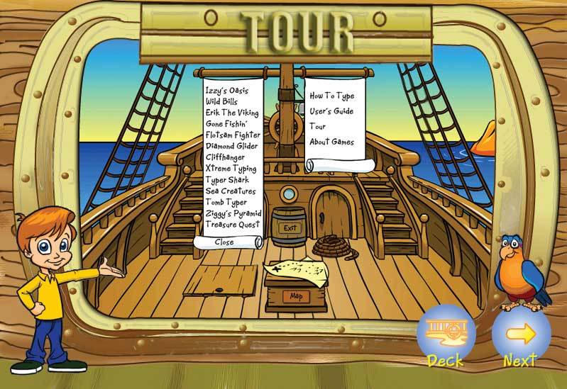 Explore five exciting lands on Typer Island on your adventure to reach the Castle. Take a break from your typing plan at anytime and visit the Practice Area where you can play challenging multi-level games in the arcade on Explorer Isle, practice lessons and tests, or practice typing classic literature or fairy tales in Story Lagoon.