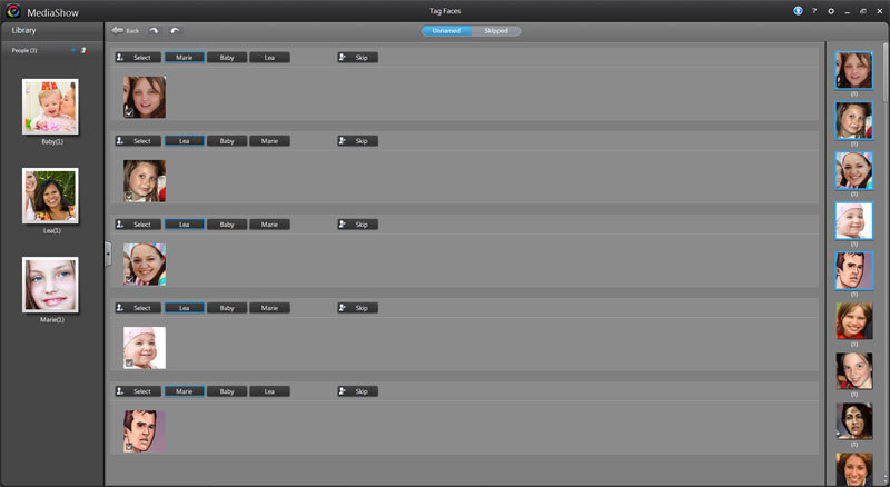 La technologie FaceMeTM de MediaShow identifie et regroupe automatiquement les visages de toutes vos photos afin que vous puissiez tagger votre entière collection plus rapidement et plus intelligemment.