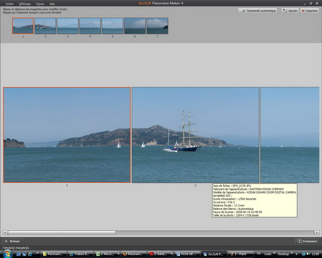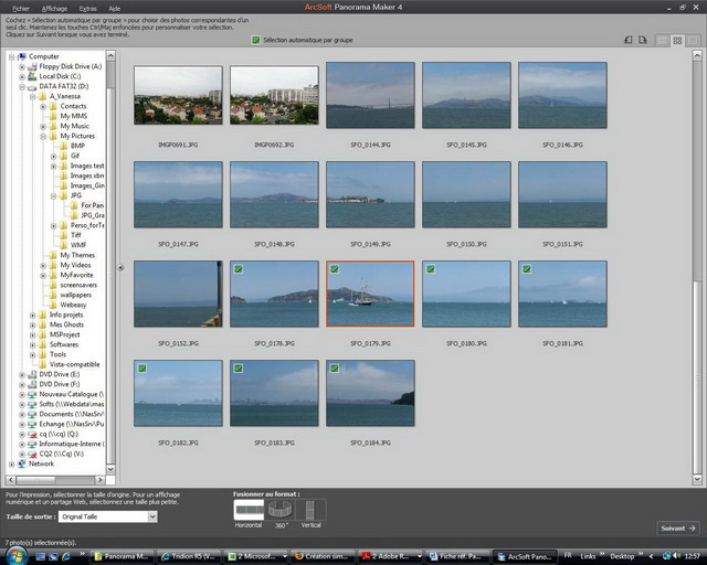 - Sélection automatique et dans l’ordre des photos pour un panorama au rendu professionnel : analyse instantanée des groupes de photos qui s’assemblent et il ne reste qu’à confirmer en 1 CLIC